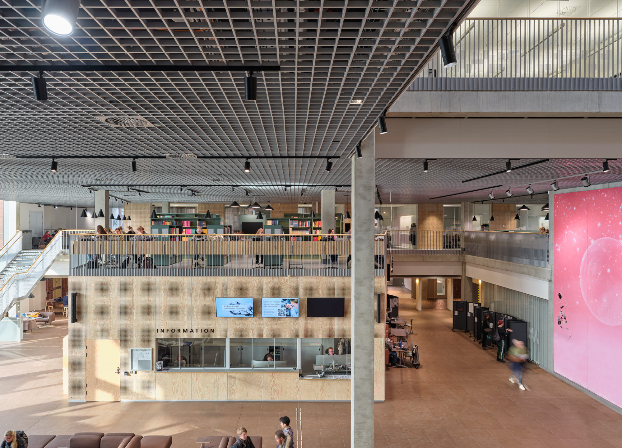 — Studenternas önskemål var tydligt: de ville ha många och varierade studieplatser. Det har vi gett dem. Här finns bord för hela gäng eller enskilda platser, studiemiljöer mitt i folklivet i foajén eller lugnare hörnor att dra sig undan till. Det känns jättebra att komma på besök och se hur studenterna arbetar och umgås, säger Elin Alm, uppdragsansvarig inredningsarkitekt på Tengboms Malmökontor.